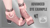 The booties are dyeable, but it is recommended to use Advanced Dyes in Glamourer, or Penumbra's colorset editing.