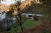 La orientación final de la casa, ortogonal a las curvas de nivel, buscó una mejor relación con el terreno y la plataforma plana donde se asienta, permitiendo conservar la vegetación existente y mayores zonas de estar exteriores. Su implantación elevada con un gran voladizo sobre el talud inferior acentúa la transparencia visual desde el río y reduce la ocupación en el suelo.