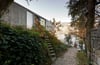 La ruina de granito existente se recuperó y acondicionó en dos niveles: planta baja como área de apoyo para ski acuático con bodega, baños y duchas revestidos en viroc; y planta alta con un pequeño espacio de huéspedes de dormitorio y baño revestido en madera de abedul.