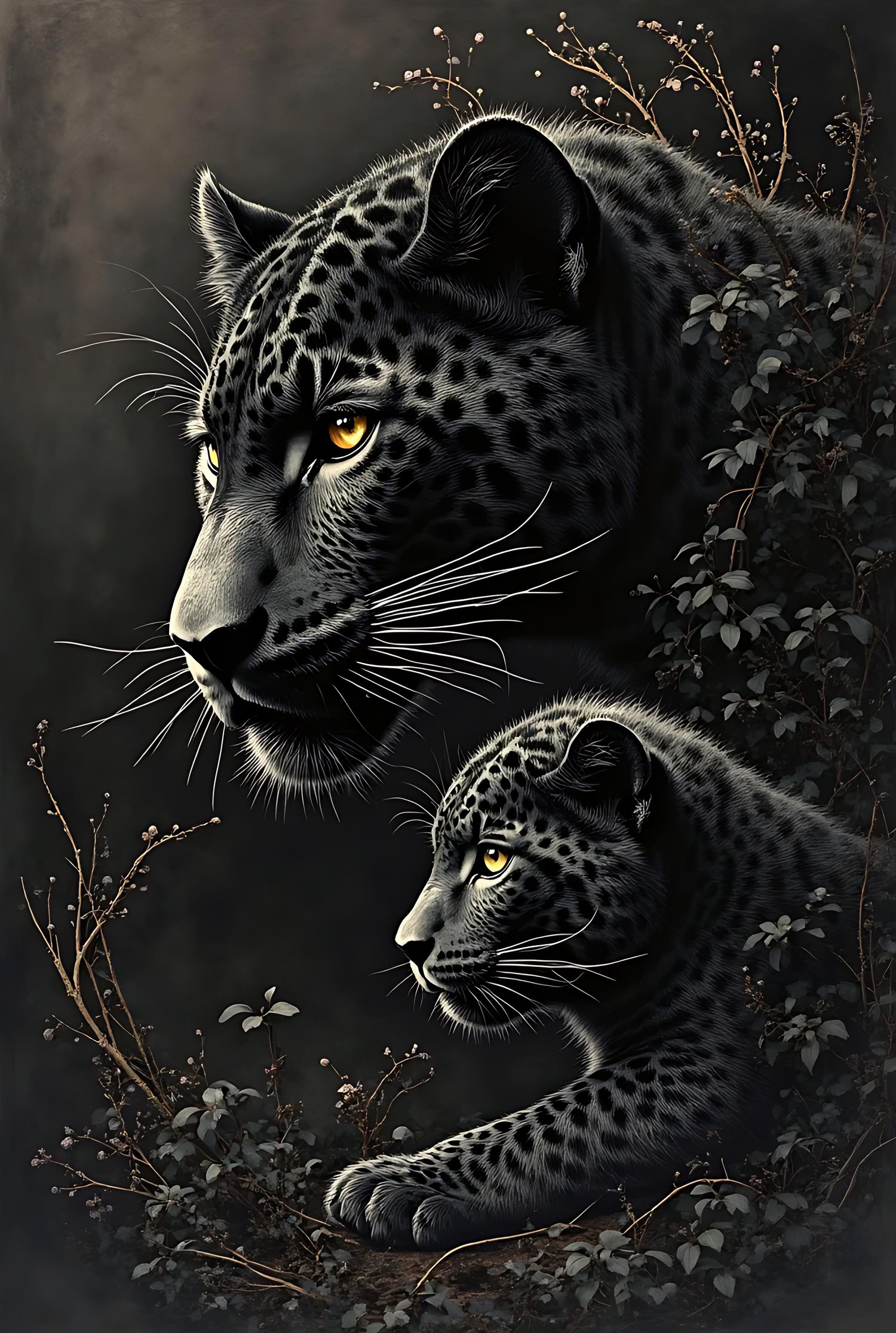 This beautiful photograph captured a black leopard with her cub. The photograph will be printed on Hahnemühle gallery fine print paper. The size is A2 (420mm x 594mm)