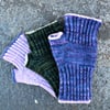 samples knit with Malabrigo Merino Worsted in Violettas and Orchid (purple set), and Vaa and Vetiver (green set).