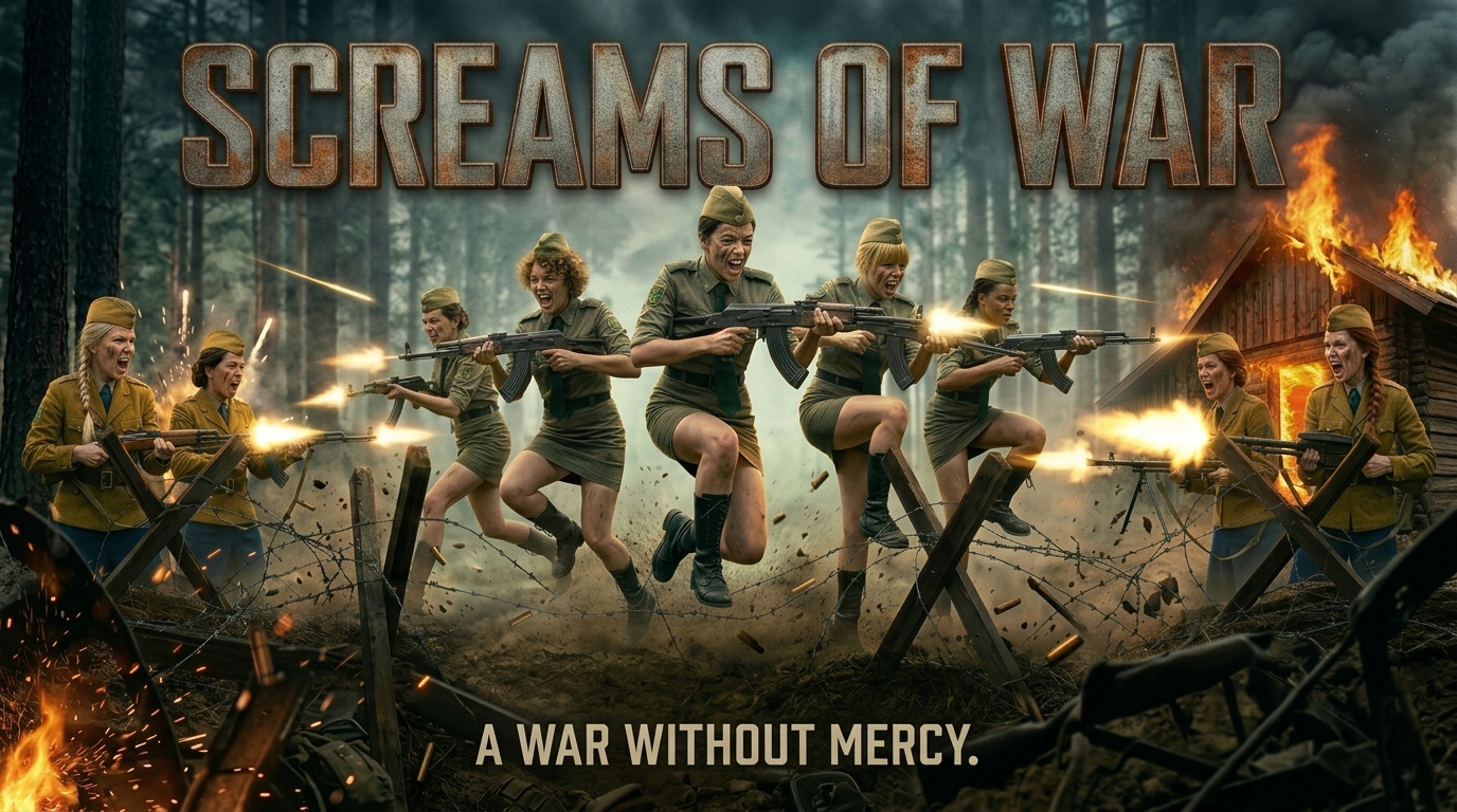 Screams of War is a brutal, tension‑filled story about a world shattered beyond repair. At the center of the chaos stand two female factions: the Iron Valkyries elite, disciplined warriors and the Nazi Girls, a wild and unpredictable force that strikes like a storm without warning. The war unfolds in daylight, but this is no ordinary day. Above the battlefield hangs a sun hot as hellfire red, scorching, merciless. It doesn’t illuminate. It burns, exposing every shadow, every crack, every trace of fear on the faces of the women who fight beneath it. Wooden buildings rise like dark, charred skeletons, their rough walls swallowing echoes of gunfire. The air is heavy, trembling with heat and tension, as if the world itself is on the edge of ignition. Every breath feels thick, every step sounds final. This is a war without mercy. In this hellfire‑lit day, everything becomes sharper, harsher, more brutally real. It’s a world where even the sun is an enemy a red, watching eye that fuels the chaos below. The film reveals true darkness, as well as even through gore, but through weight, pressure, destruction, and emotional intensity. It’s a story of survival in a world burning from within.