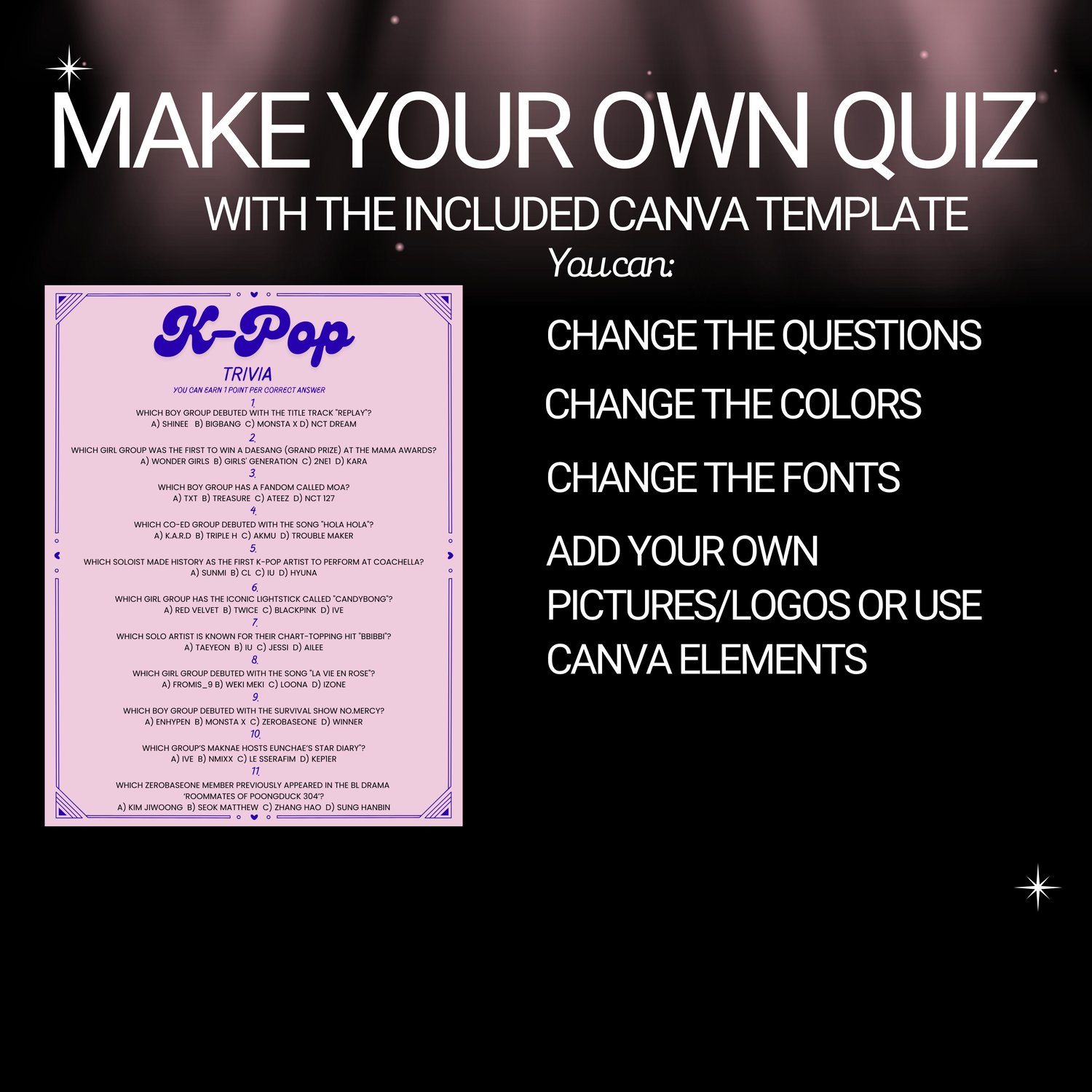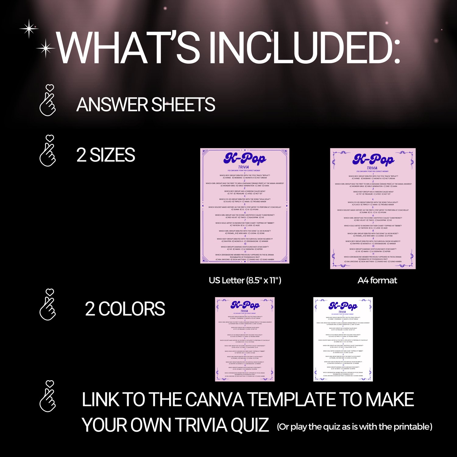 K-Pop Trivia Quiz Game – Printable & Editable Canva Template