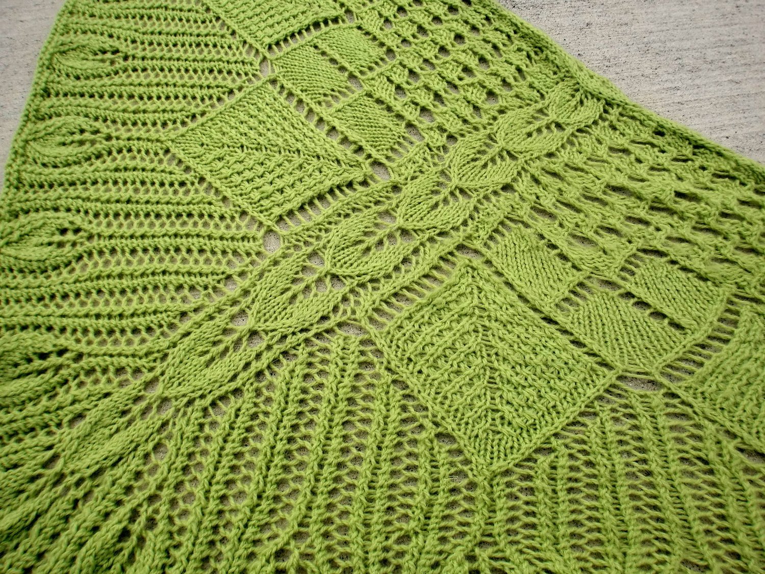 Tightly closed buds swell and grow fuzzy before bursting into glorious leaf in this small triangular shawl, which works up quickly in worsted-weight yarn. Featuring a tab cast-on with a decorative edging and spine, twisted stitches, and double yarnovers, the airy columnar edging is worked on both sides. Inset leaves add a finishing touch and a slight flare to the edging.