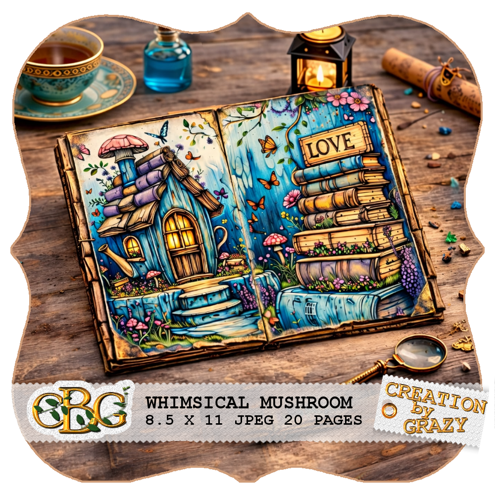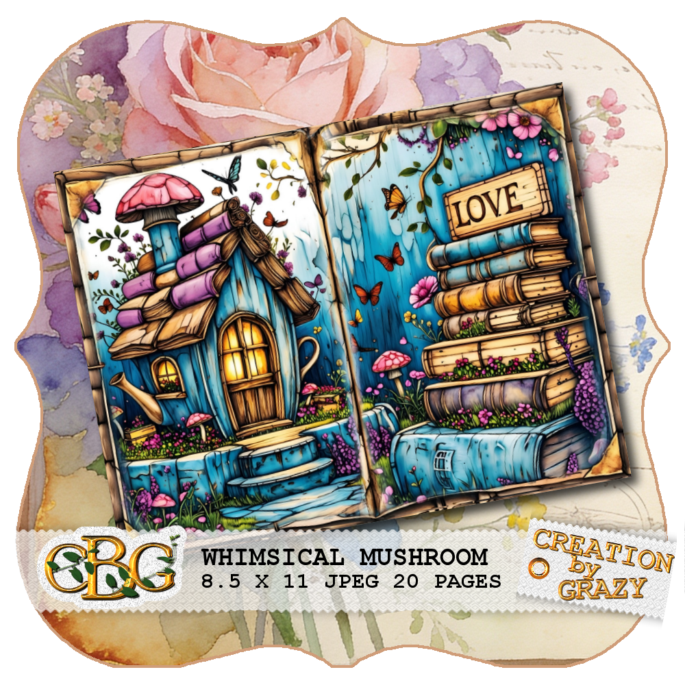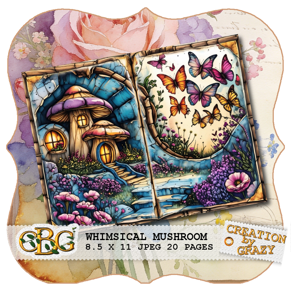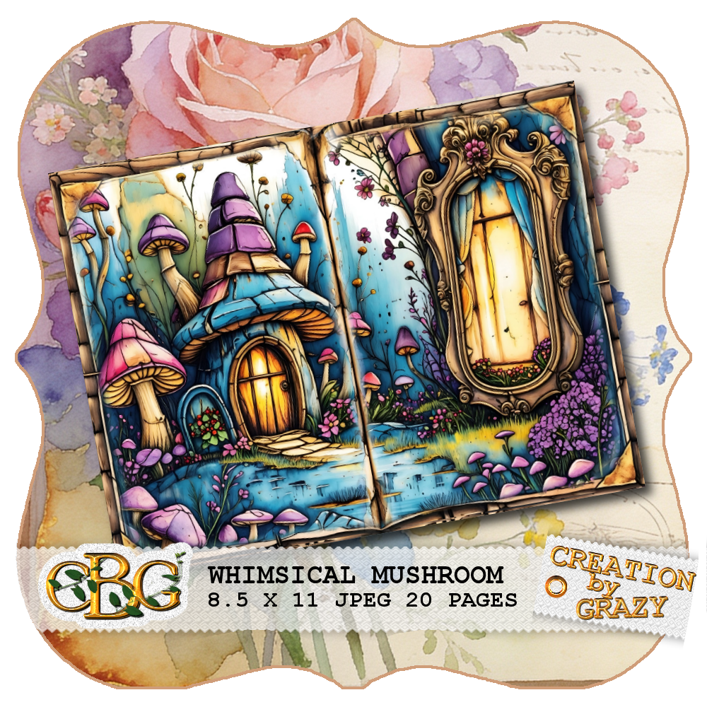 • 🧸20 Pages Whimsical Mushroom Shabby Chic Background Pages