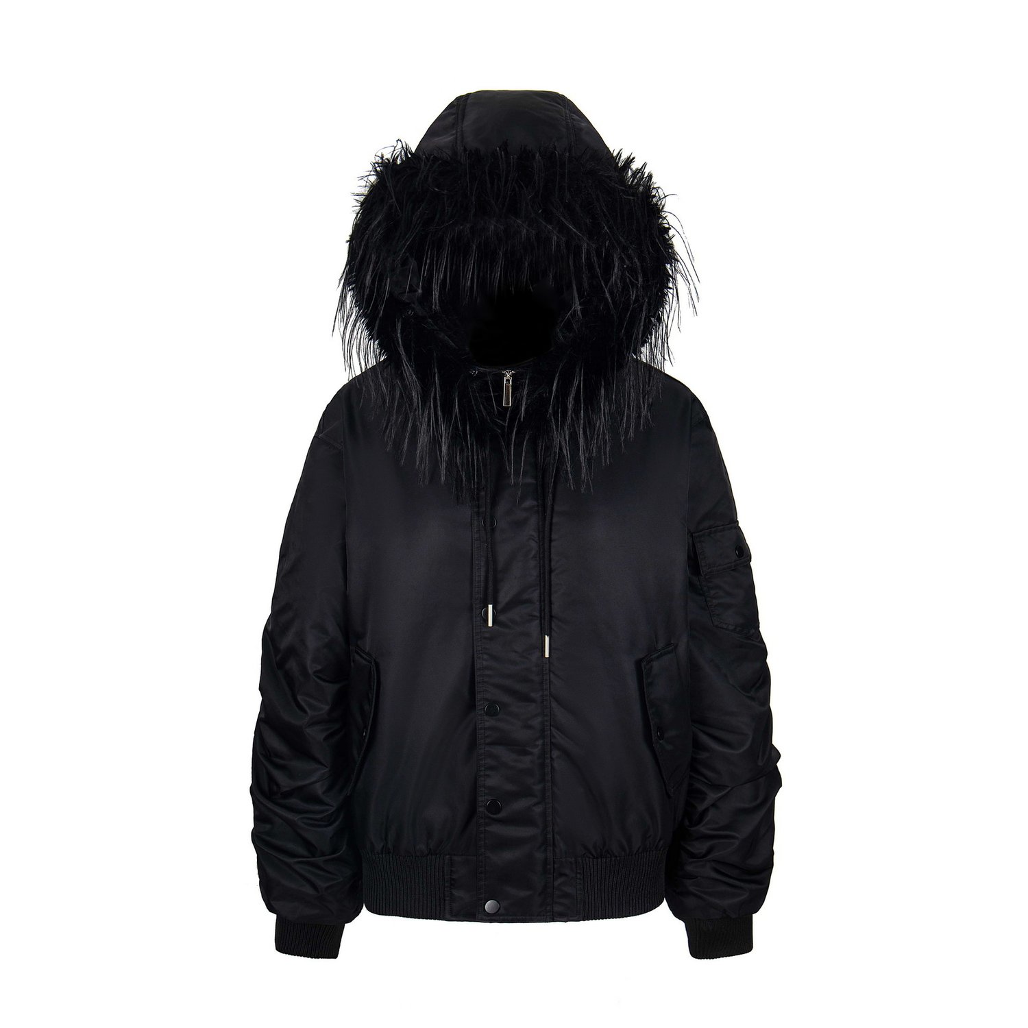 Designer Y2K retro street style removable hood fur hoodie puffer pilot jacket