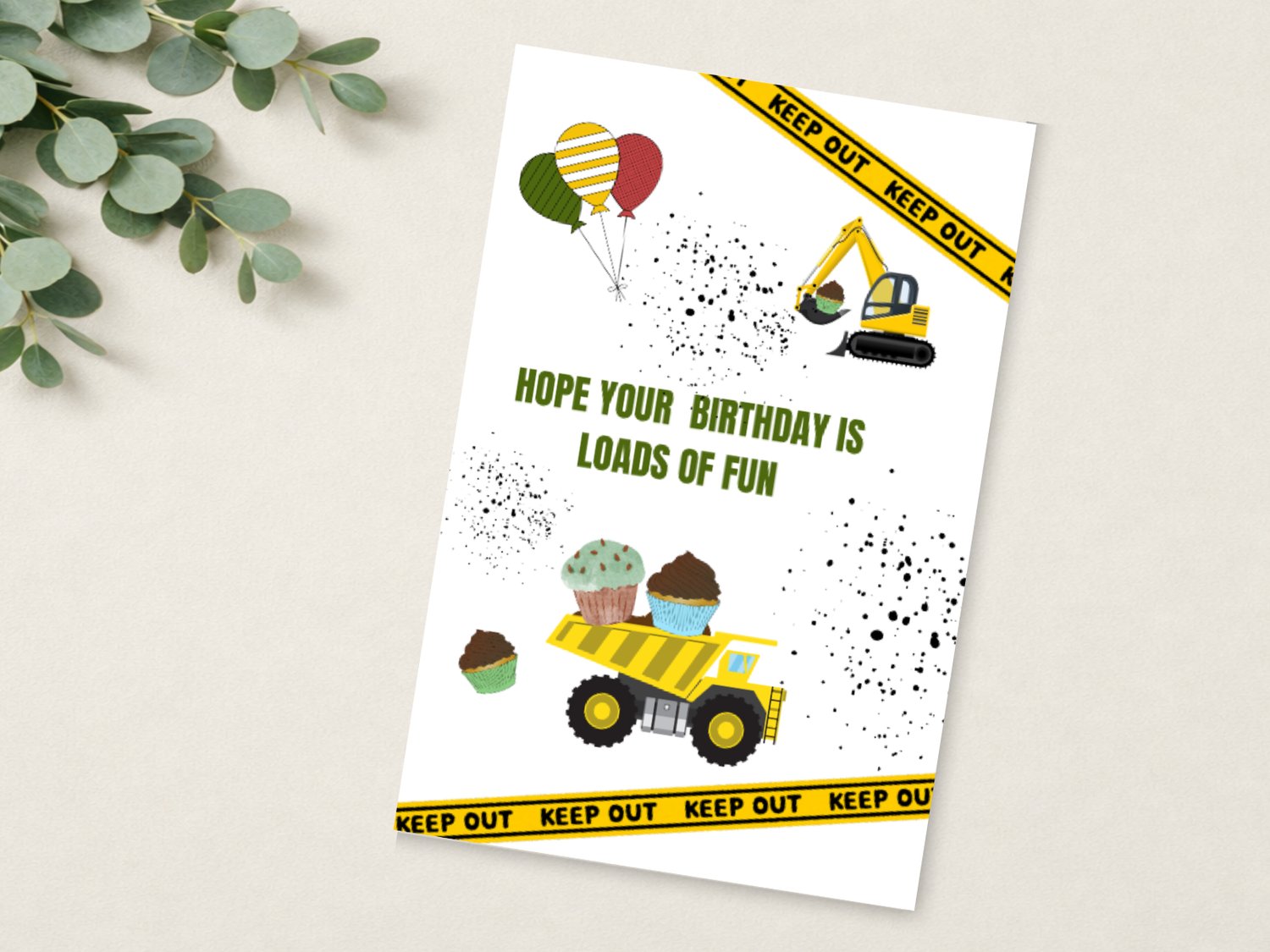 Loads of Fun Construction Birthday Card β Printable & Folded