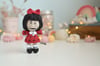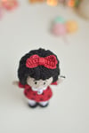 Mafalda es una muñeca amigurumi de tamaño pequeño. Si haces a Mafalda con los materiales arriba explicados, medirá aproximadamente 12 cm de alto.