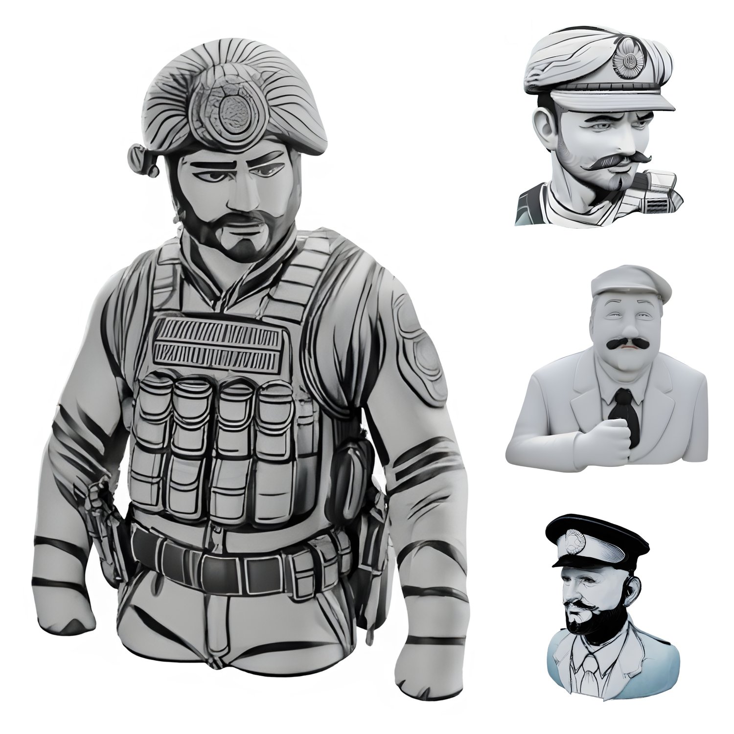 - Military Hero: A strong and detailed soldier bust with tactical gear and a beret, ready for action.