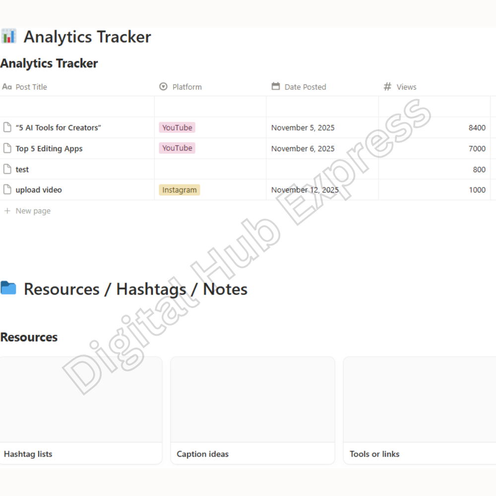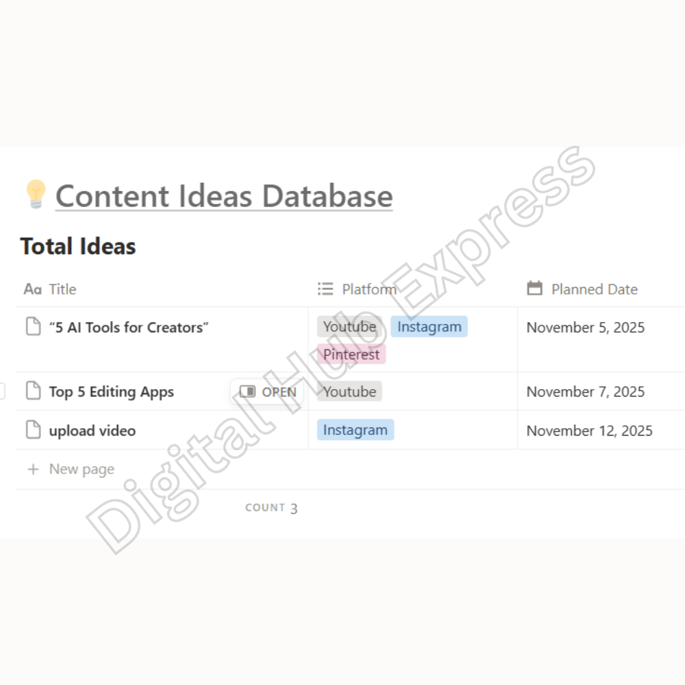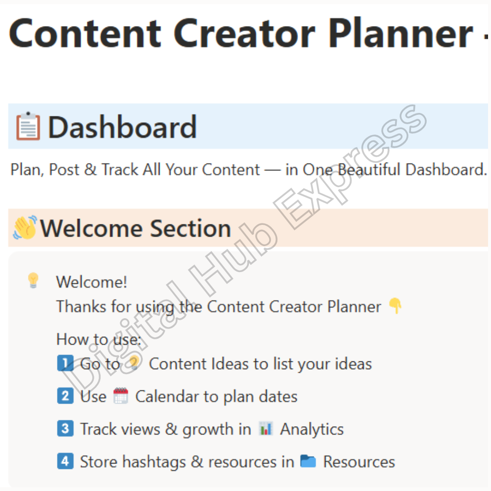 - 💡 Content Ideas Database — capture and organize all your creative ideas.