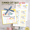Printable Summer Gift Tags for Kids, Sunny Cute Gift Tag Set