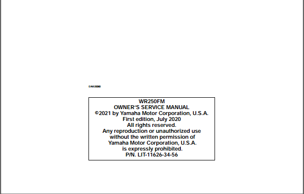 2021 Yamaha WR250F Service Manual Part No. LIT-11626-34-56