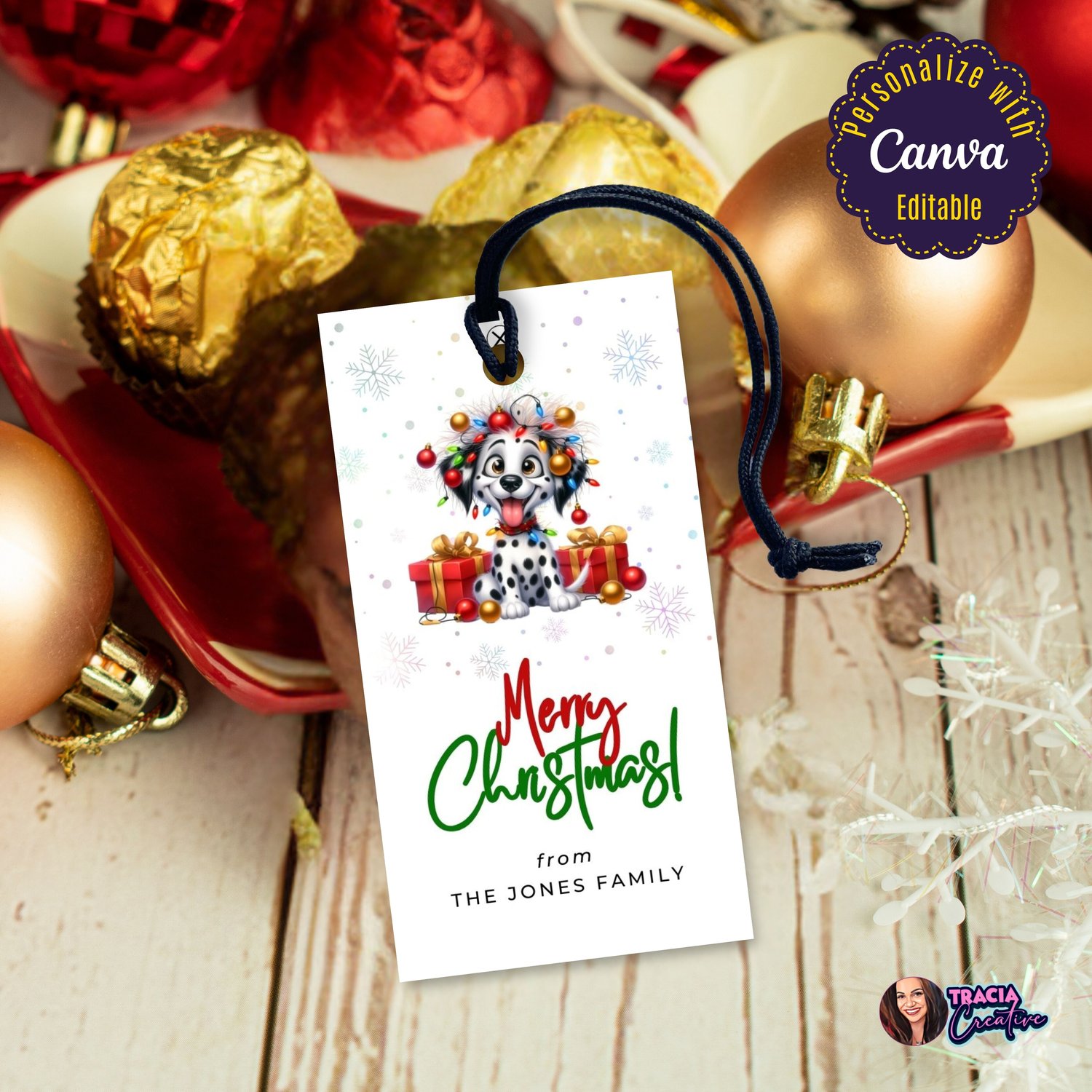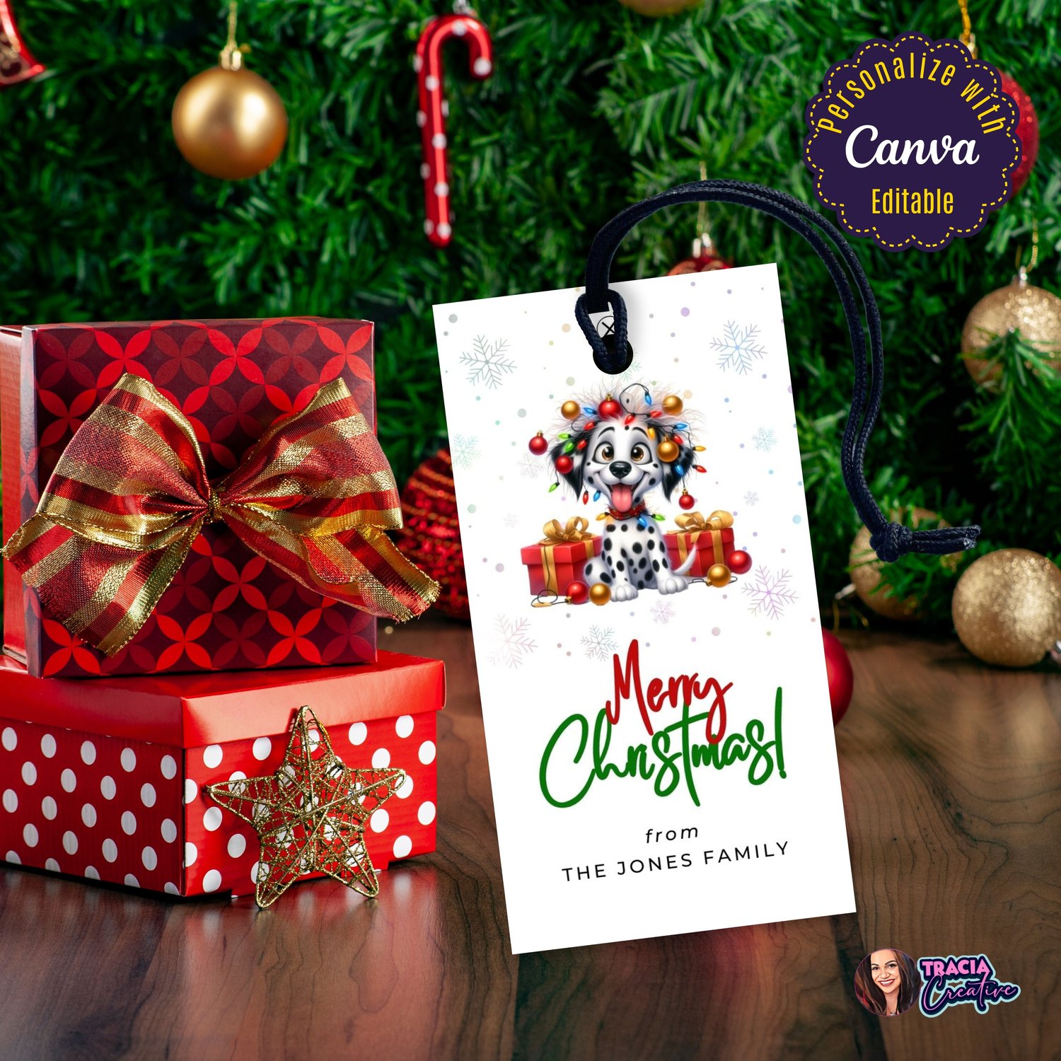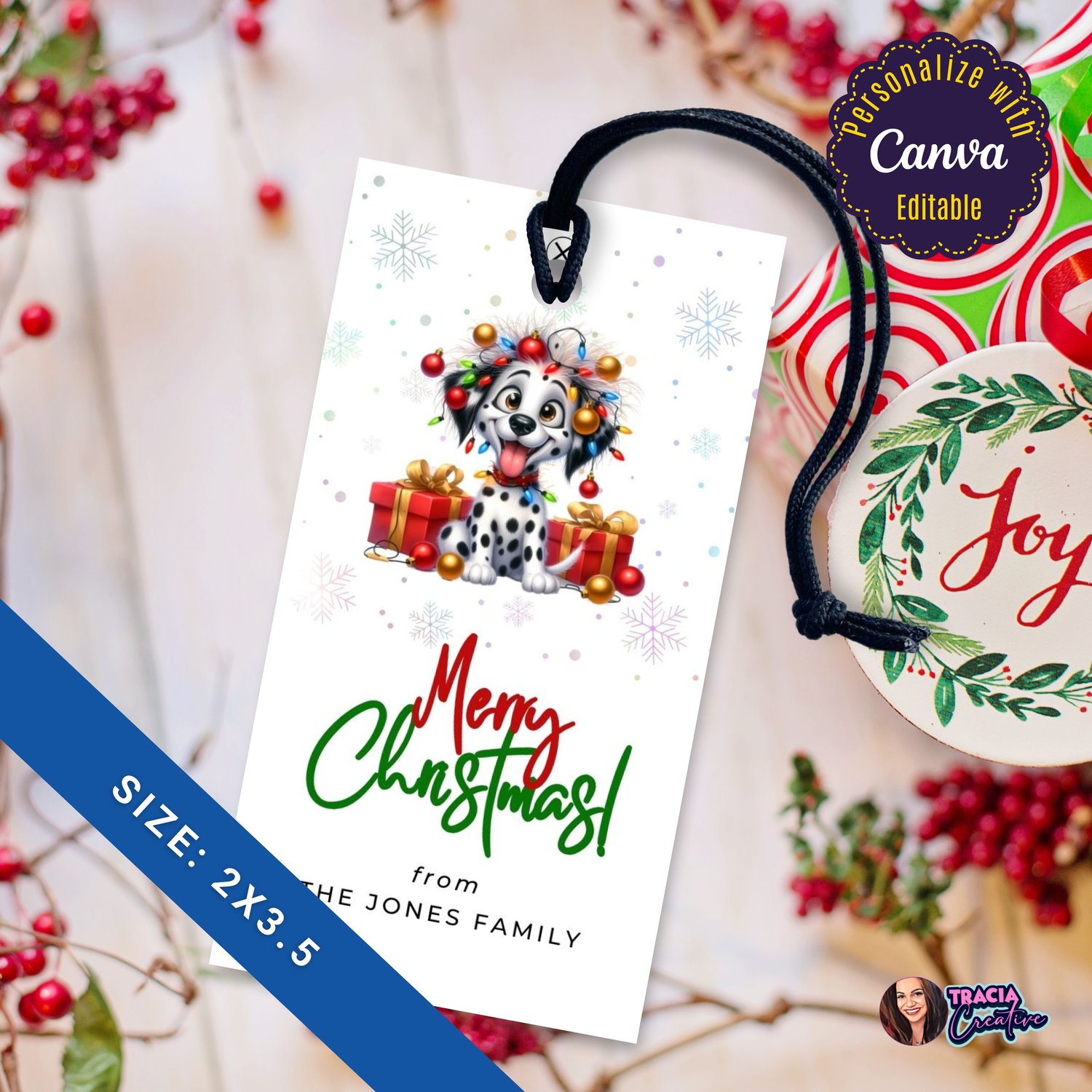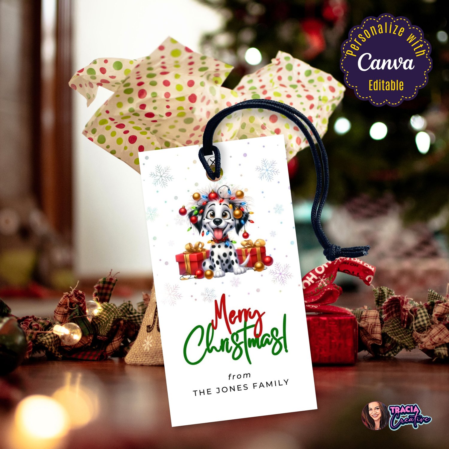Editable Funny Dog Merry Christmas Gift Tag | Canva Template PDF Download | Party Printable