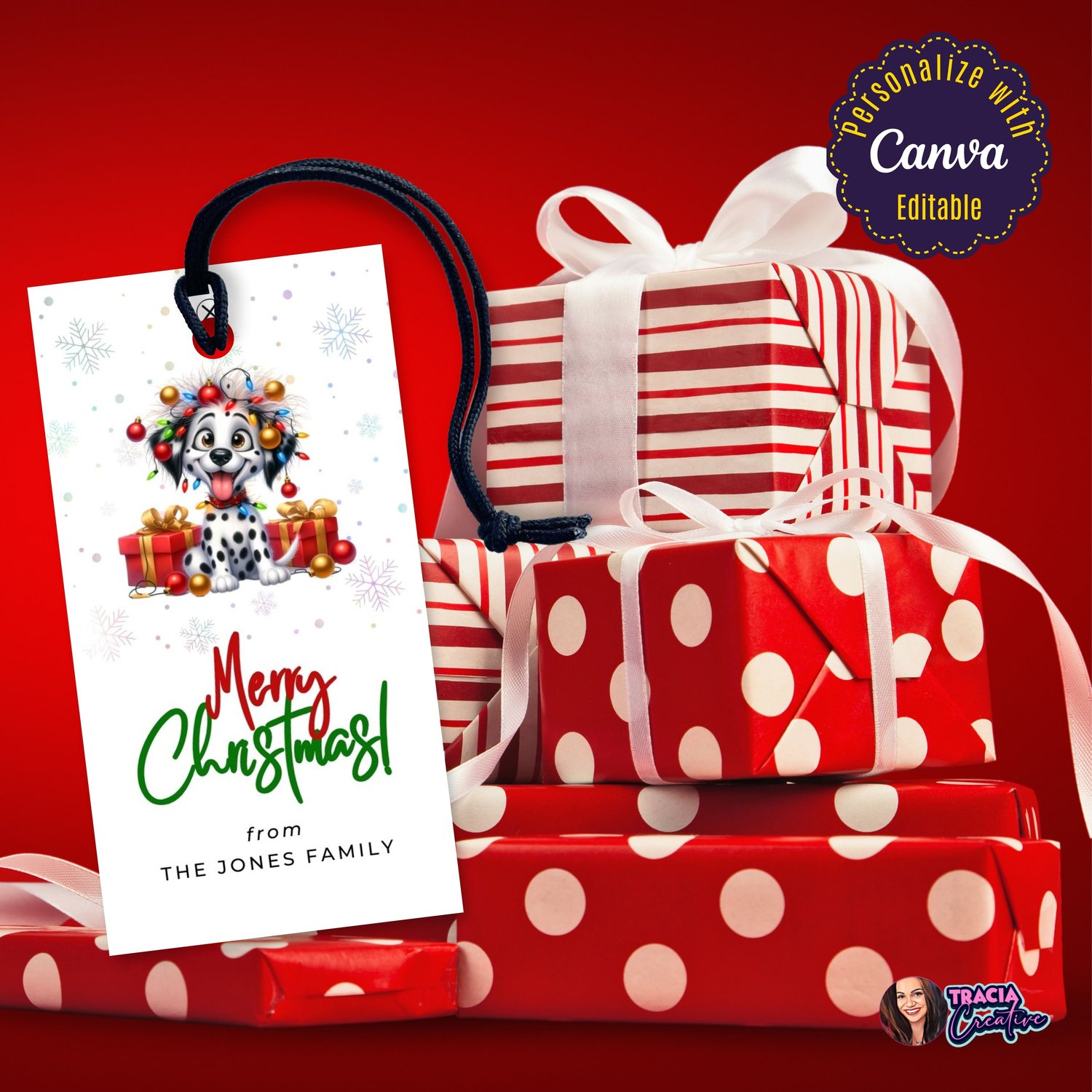 - Editable in Canva: Tailor the gift tag with your name using Canva. You can edit, add, and remove text, change font and font colors, move and resize the text boxes and add your own images. You CANNOT change the graphics included in the design.