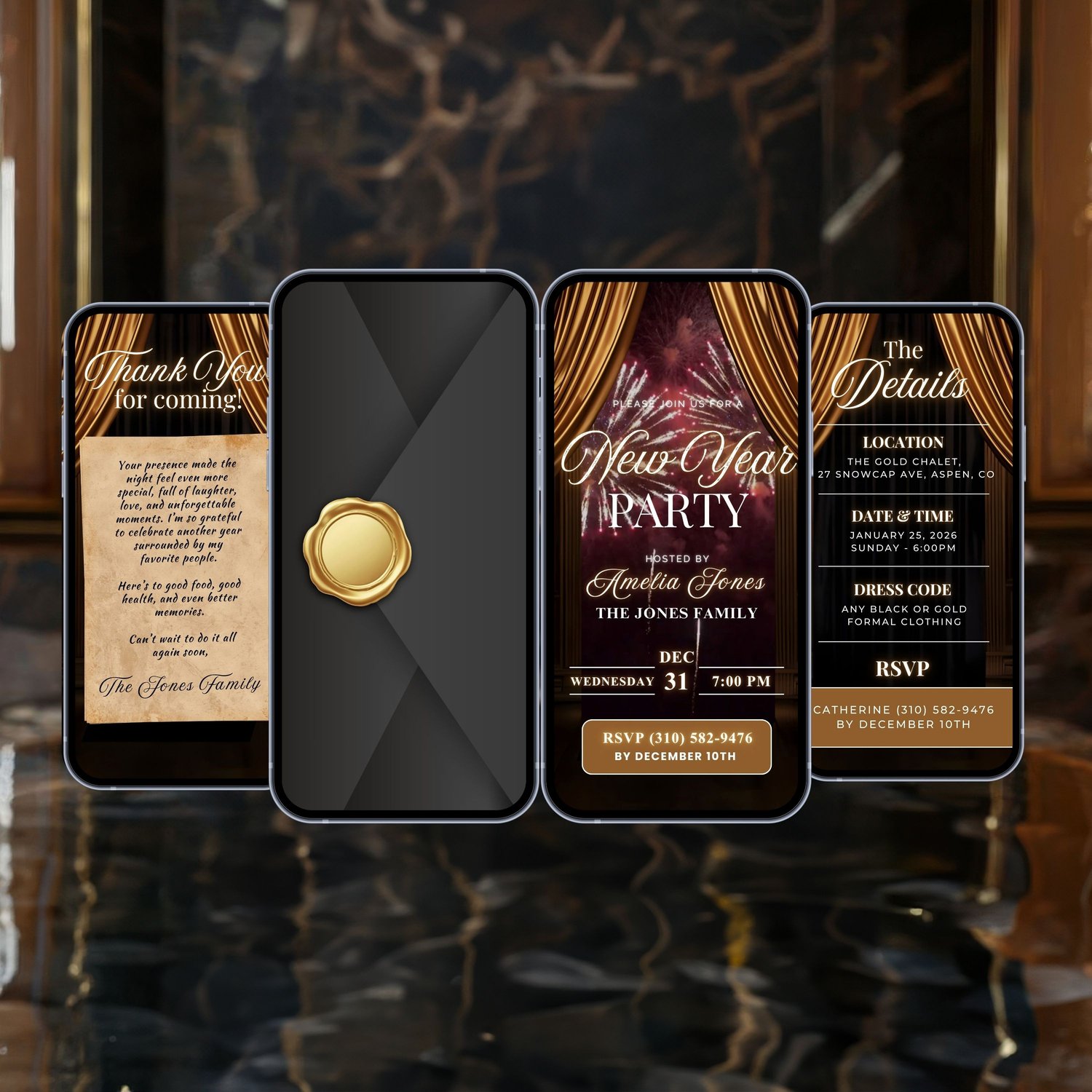 Celebrate the countdown in style with this Luxurious New Year Digital Invitation Template, designed for New Year’s Eve parties, countdown celebrations, family gatherings, and dinner night events. This animated NYE invite is perfect for sending as a video invitation or digital message directly to your guests.