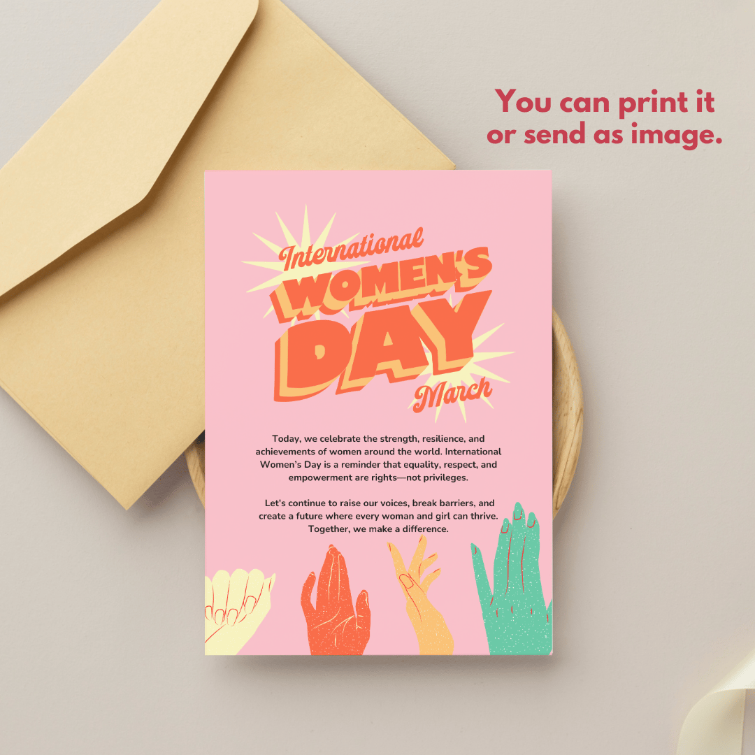 With a cartoon aesthetic and text-focused layout, this design is perfect for enterprises, coworkers, friends, and leadership teams looking to honor women's achievements.