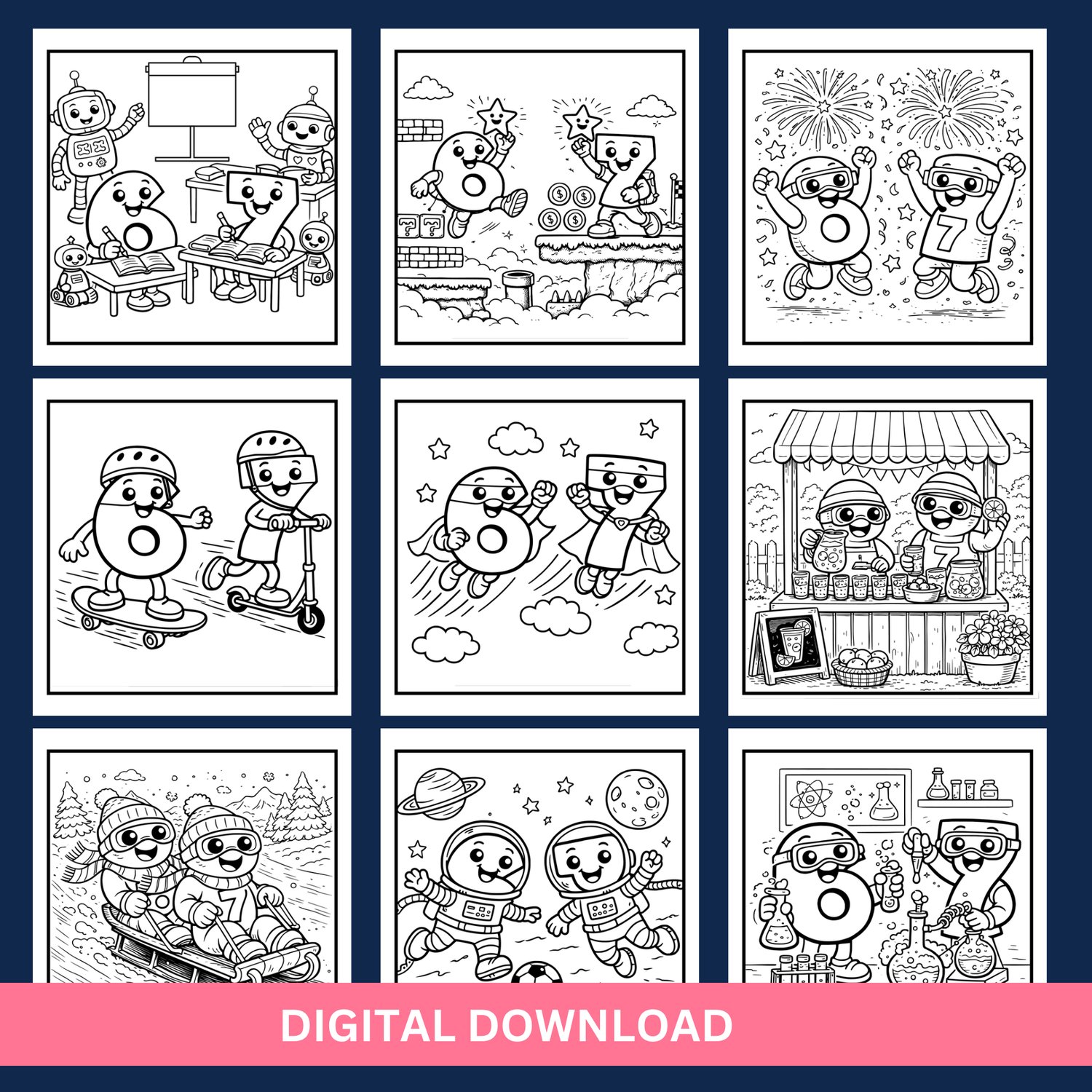 6-7 Trend Coloring Book for All Ages | 50 pages Playful six seven Adventures | Digital Download