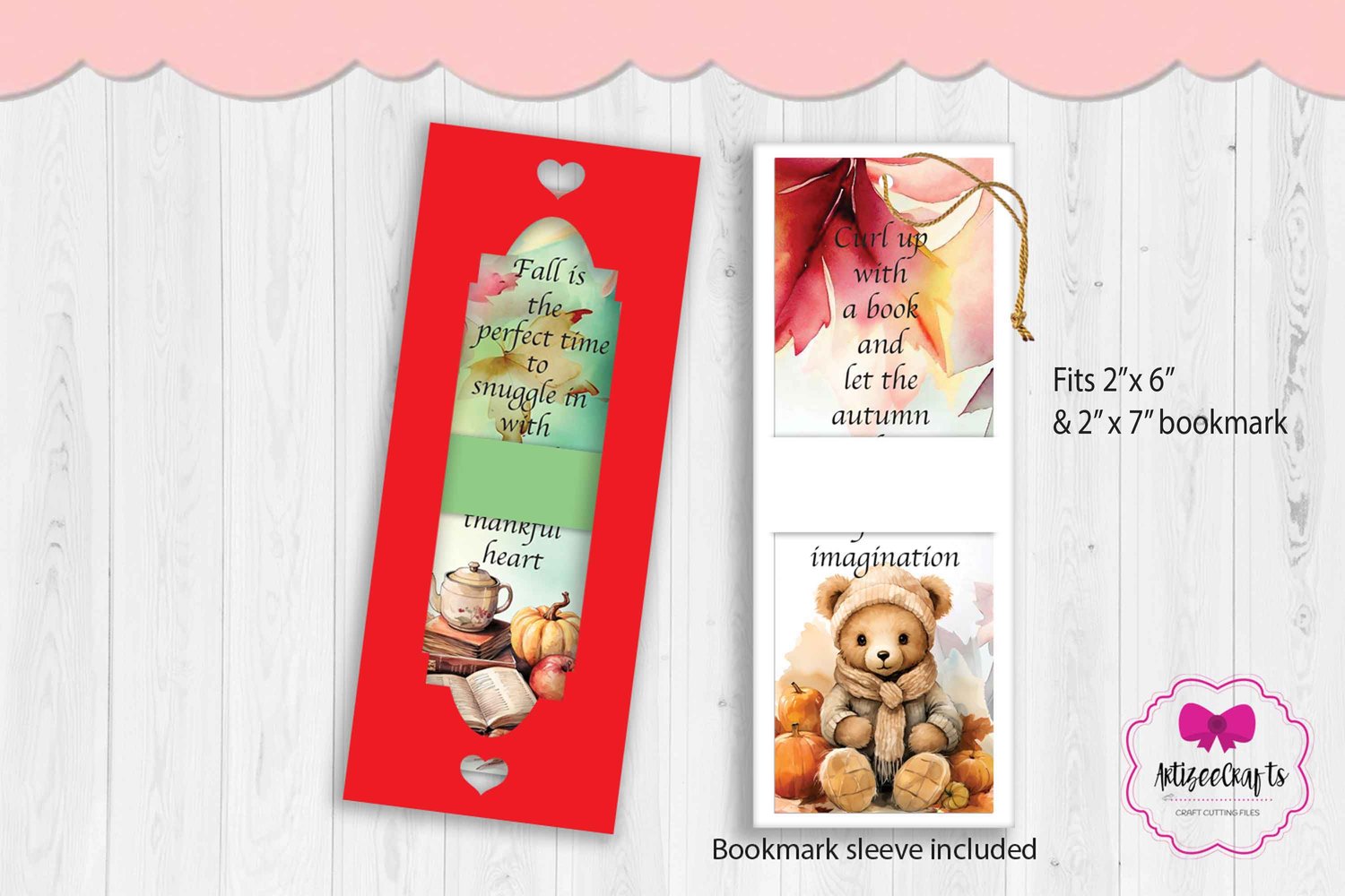 It can fit 2" x 6" and 2" x 7" bookmark.