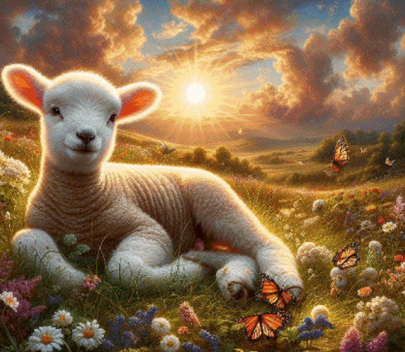 Lamb in Field Cross Stitch Pattern PDF Instant Download