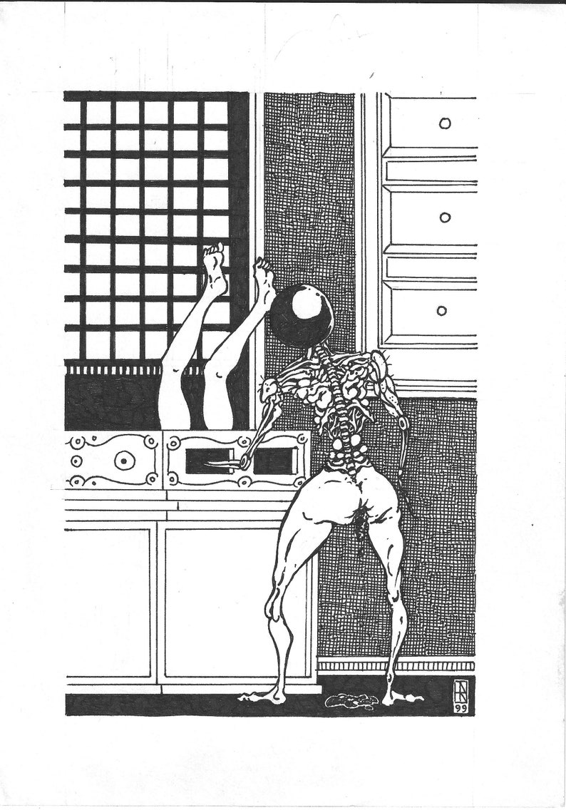 (NOTE: Many pages from Chrome Fetus Studios are composites of different drawings on multiple bits of paper and flotsam - sometimes crudely cobbled together with glue or tape. You may also find pencil marks, scribbled notes and graphite thumbprints. Consider these features as a means of certifying the genuineness of the artwork!)