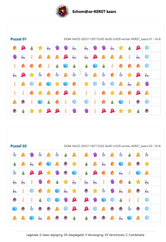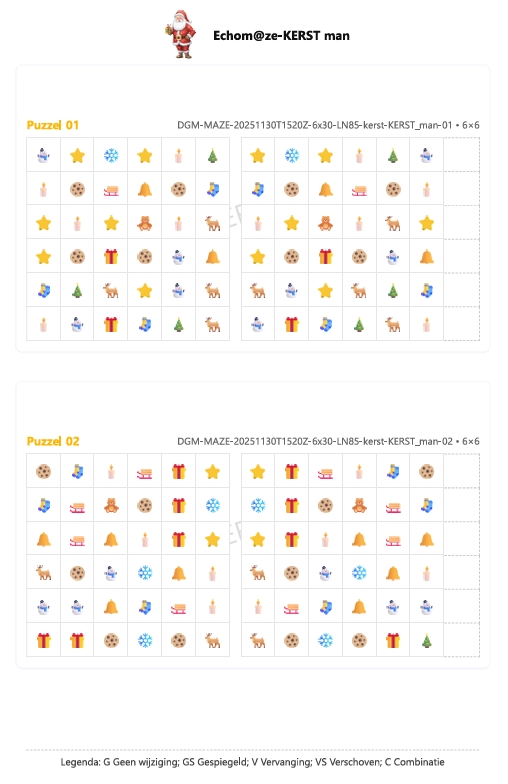 Voor deze kerst-editie zijn alle puzzels vormgegeven met kerst-symbolen, zodat de feestelijke sfeer direct voelbaar is.