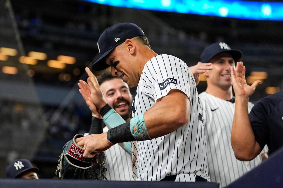 8회 2아웃과 풀카운트 상황에서 코너킥 상황에서 판사는 카일 터커의 추가 안타를 막기 위해 전력 질주했고, 우익수 파울 라인 직전에 공을 잡은 후 경고 트랙을 가로질러 가슴으로 미끄러졌습니다. 그가 일어났을 때 그의 핀스트라이프는 흙으로 뒤덮여 있었습니다.