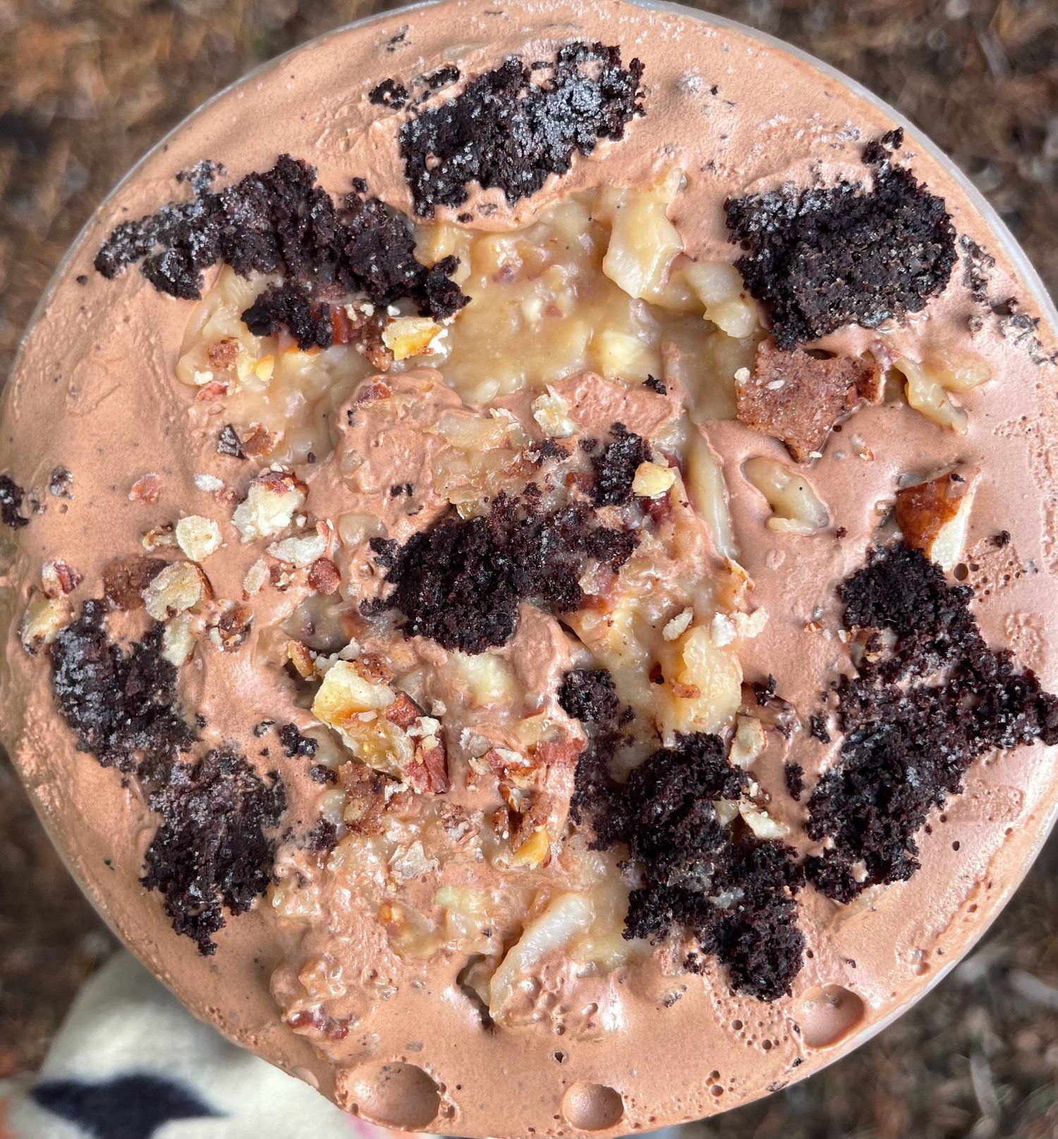 German chocolate cake was one of our Aunt Dede's favorite desserts to make. Growing up, dessert held a special place in all of our hearts, especially Dede’s. Her version consisted of a luscious chocolate cake, with a gooey coconut and toasted pecan filling. We felt truly lucky every time she invited us over for dinner, because we knew there would always be a slice of her latest bake waiting for us for dessert. I think of her each and every time I make this flavor. Here we have decadent salted chocolate ice cream with pieces of homemade chocolate cake, swirls of German chocolate cake filling and toasted pecans. I hope you enjoy it as much as I do!