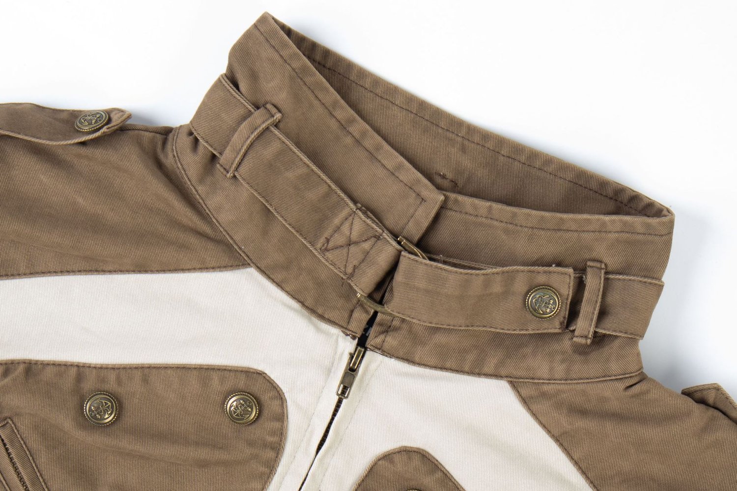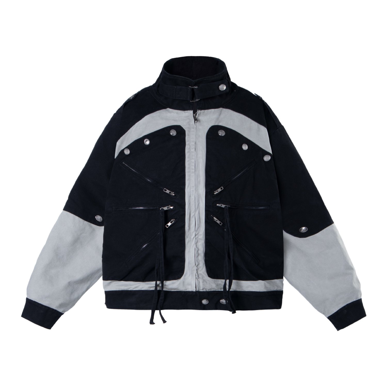 Niche designer color-blocked cargo zipper patchwork unisex jacket