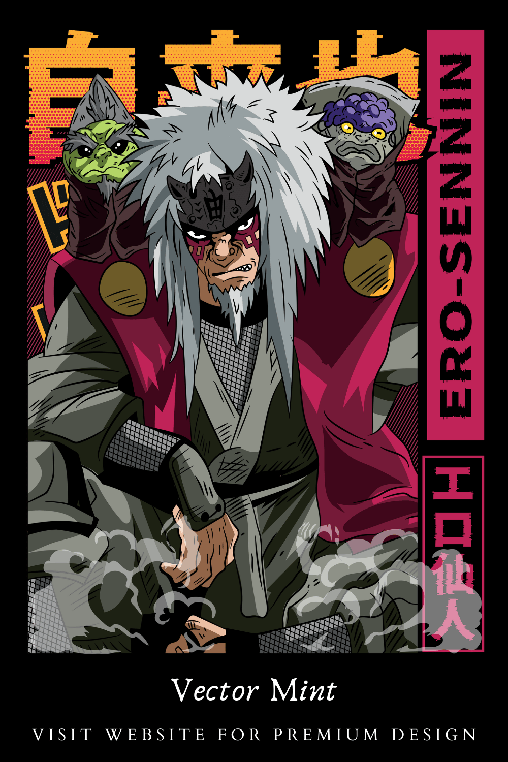 Jiraiya Sage Mode Naruto Anime T-Shirt Design Legendary Sannin Streetwear Graphic PNG Print Ready