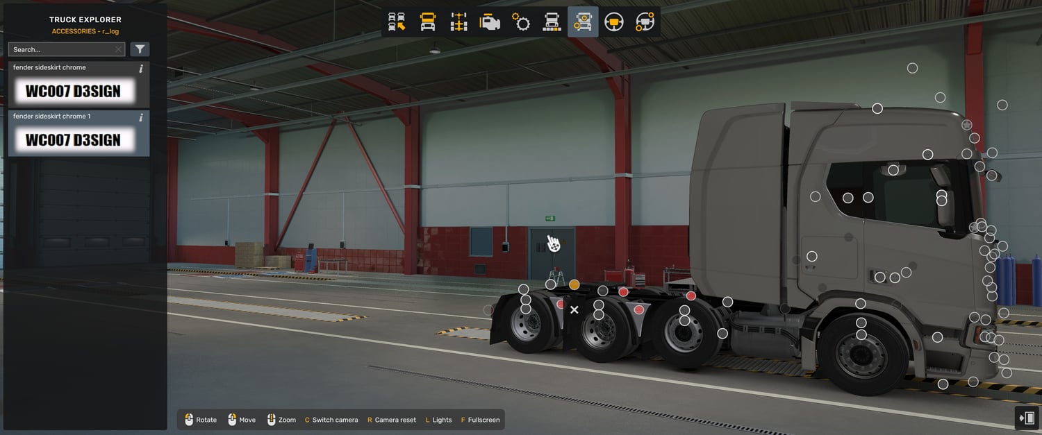 Scania fender chrome sideskirt mod works only with Scania no spoiler mod V2 and not work with and Base game Scania truck and Scania no spoiler mod V1
