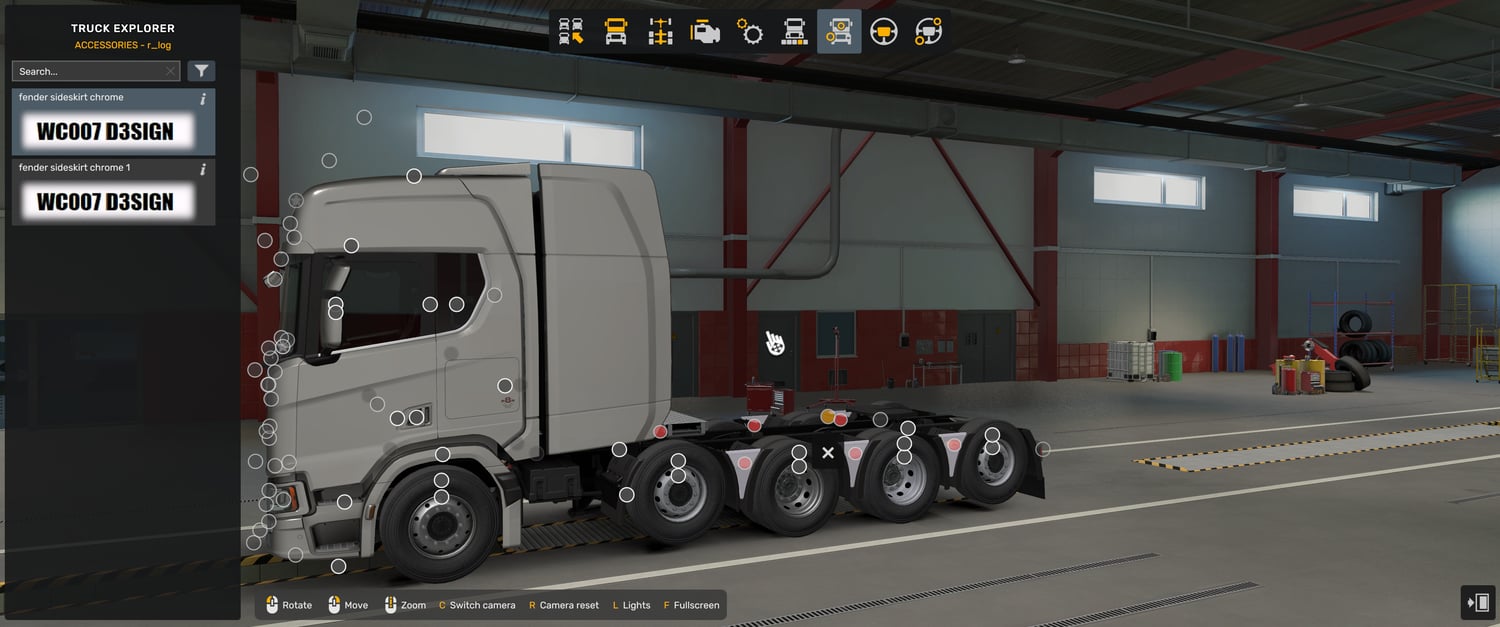 MOD description: Sideskirts between rear fenders for Scania Nextgen 6x2 short and long chassis, 8x4, 10x