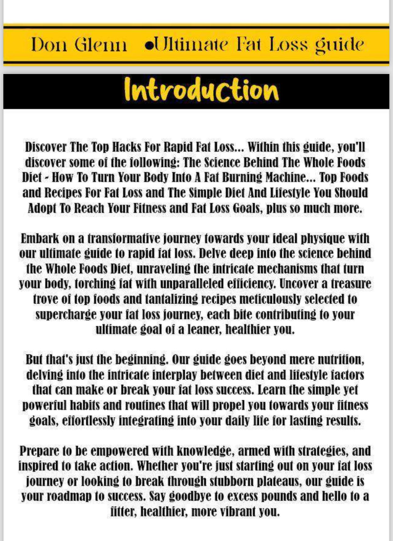 Dons Ultimate Fatloss Guide is a comprehensive 26 page ebook that gives you details on how to lose fat. Included are foods recipes you can easily make along with exercises and workout plan . Give this ebook a try am incorporate everything in this easy to understand ebook . 😊💪🏽