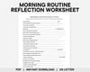 Morning Routine Reflection Worksheet, Morning Habits, Goal Setting, Mindfulness, Gratitude, Self Awareness, Self Reflection, Self Care