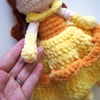 The Princess Belle doll features a low-sew amigurumi wearing the beautiful iconic yellow dress in Disney’s Beauty and the Beast movie. At 10 inches in height, she’s plush and huggable for any little princess lover. She is almost completely no-sew and worked all in one piece, except for attaching the hair cap to the head.