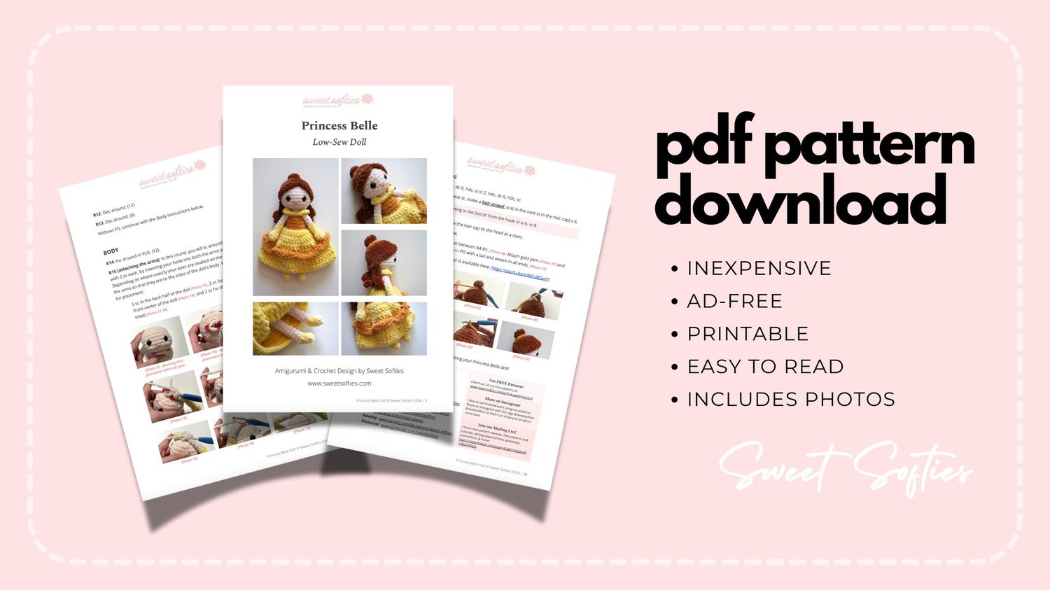 Pattern info page: https://www.sweetsofties.com/2025/09/princess-belle.html