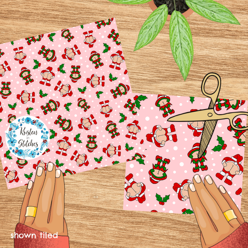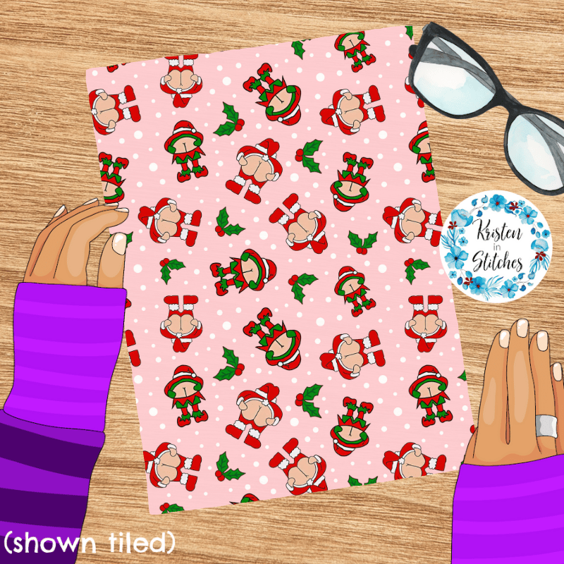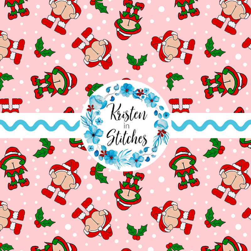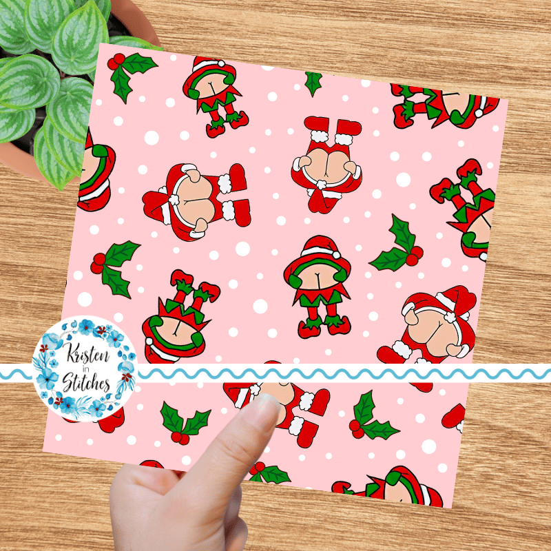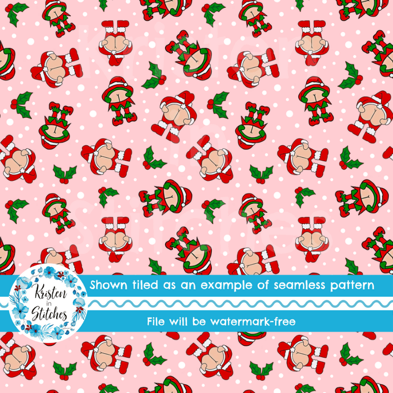 Cheeky Christmas Seamless Pattern, Kiss My Merry Ass, Santa Claus and Elves