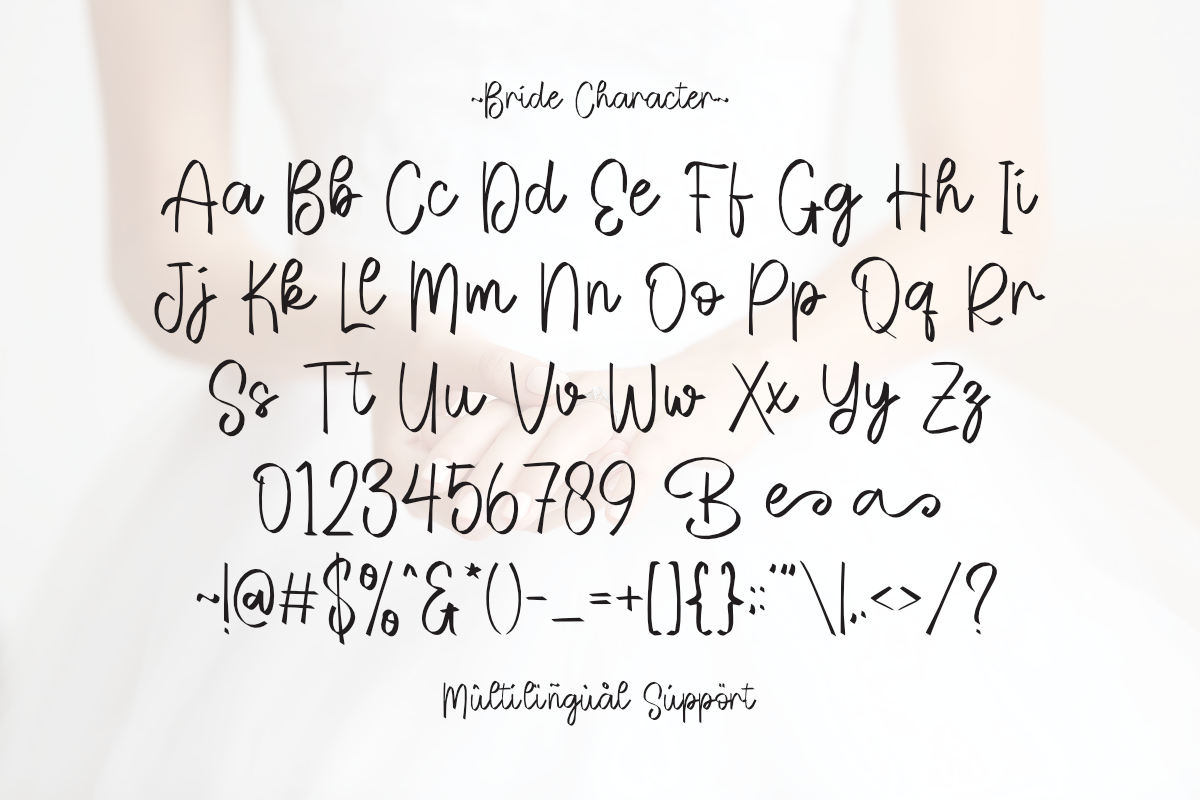Bride is an elegant and modern handwritten script font, perfectly balanced between sophistication and charm. Its graceful swashes and clean strokes make it ideal for wedding invitations, bridal shower designs, and romantic stationery projects. With a timeless aesthetic, Bride adds a personal and luxurious touch to any design — from save-the-date cards to upscale branding. Whether you're a wedding planner, Cricut crafter, or graphic designer, this font will bring elegance and beauty to your creations.