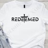 Declare your transformation with this powerful 'REDEEMED' t-shirt. The striking design features the word 'REDEEMED' in bold, clean lettering, with a poignant cross symbol replacing the 'E' in the center, symbolizing faith and salvation.