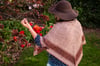 Floral Notes is a triangle shaped shawl, knit from the center out. Four sts are increased on each RS row. The center spine stitch is always k on the RS and p on the WS.
