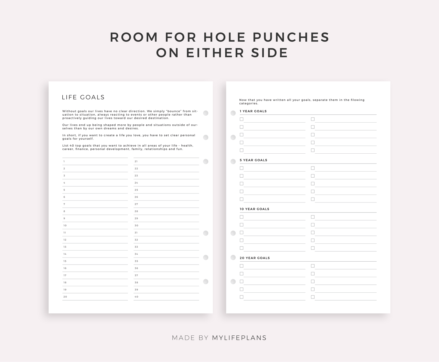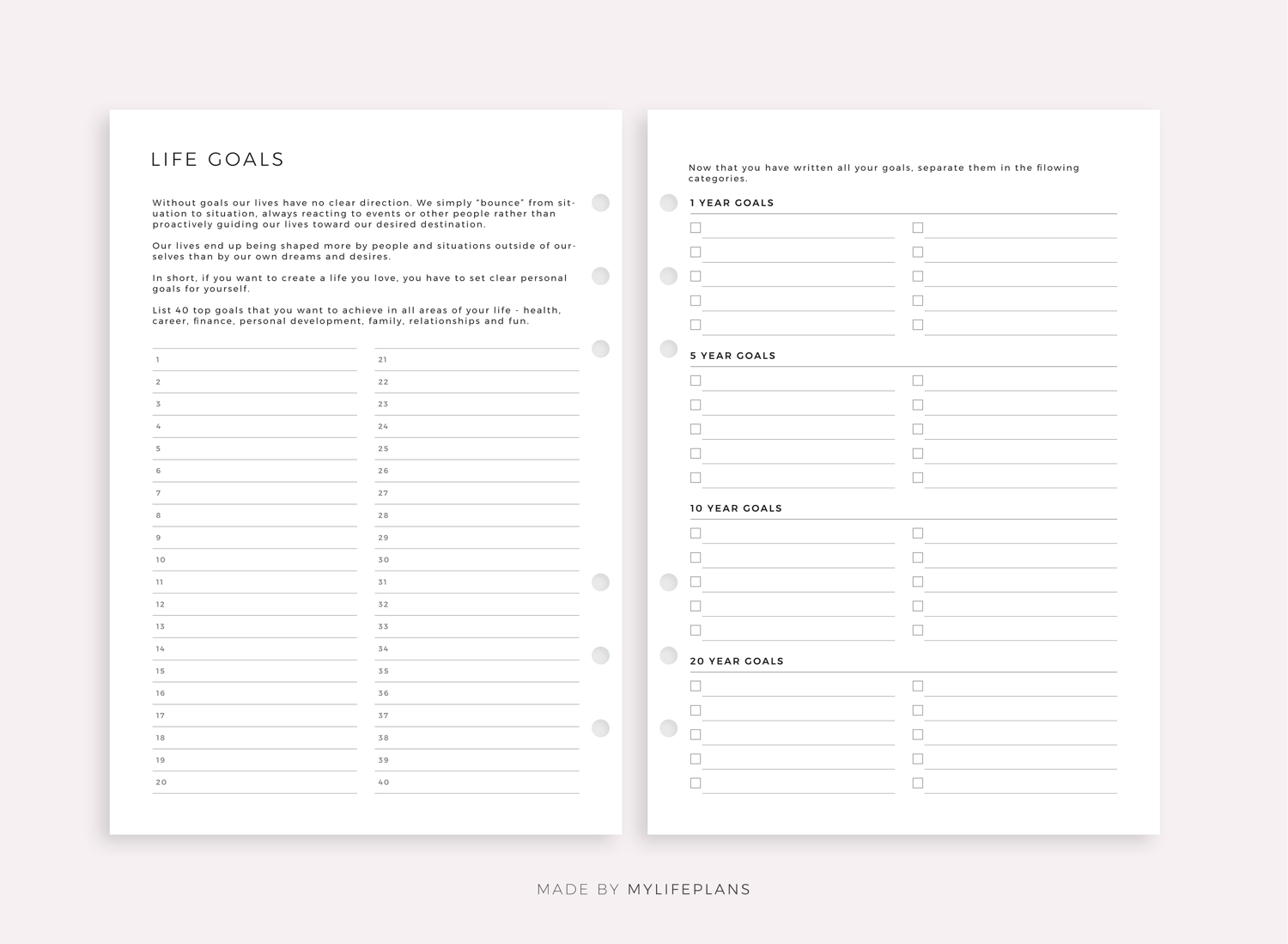 This is a printable life goals planner — just download, print, and start using it right away.