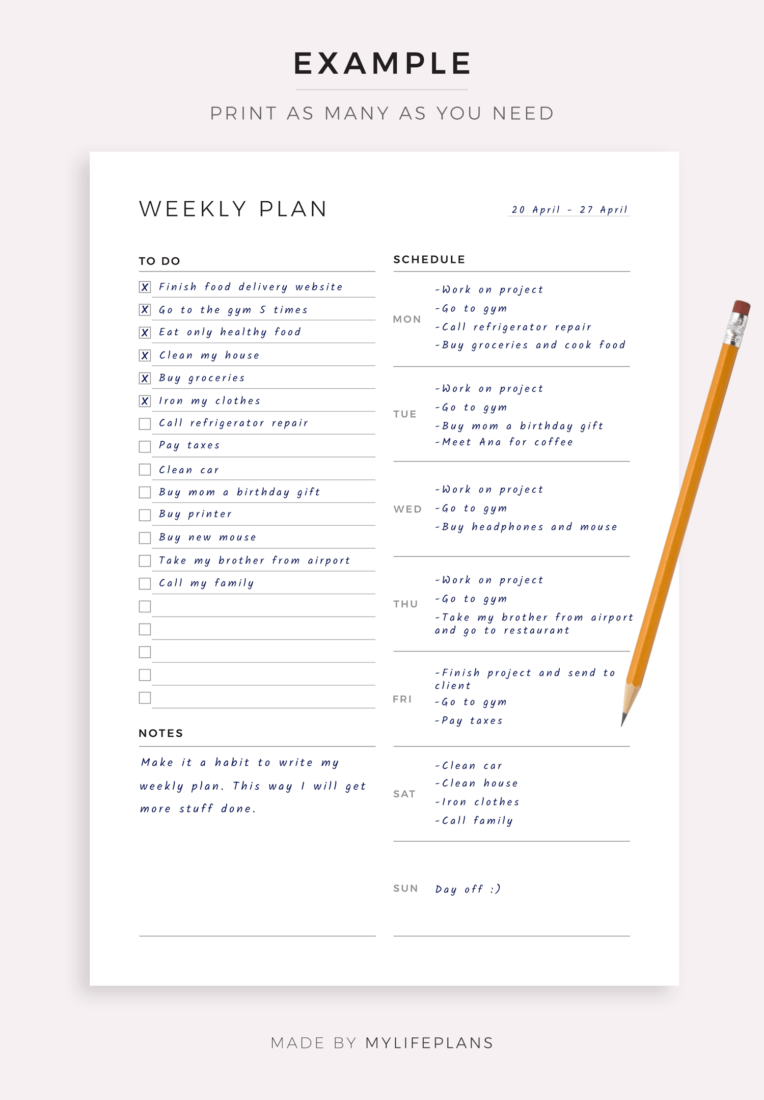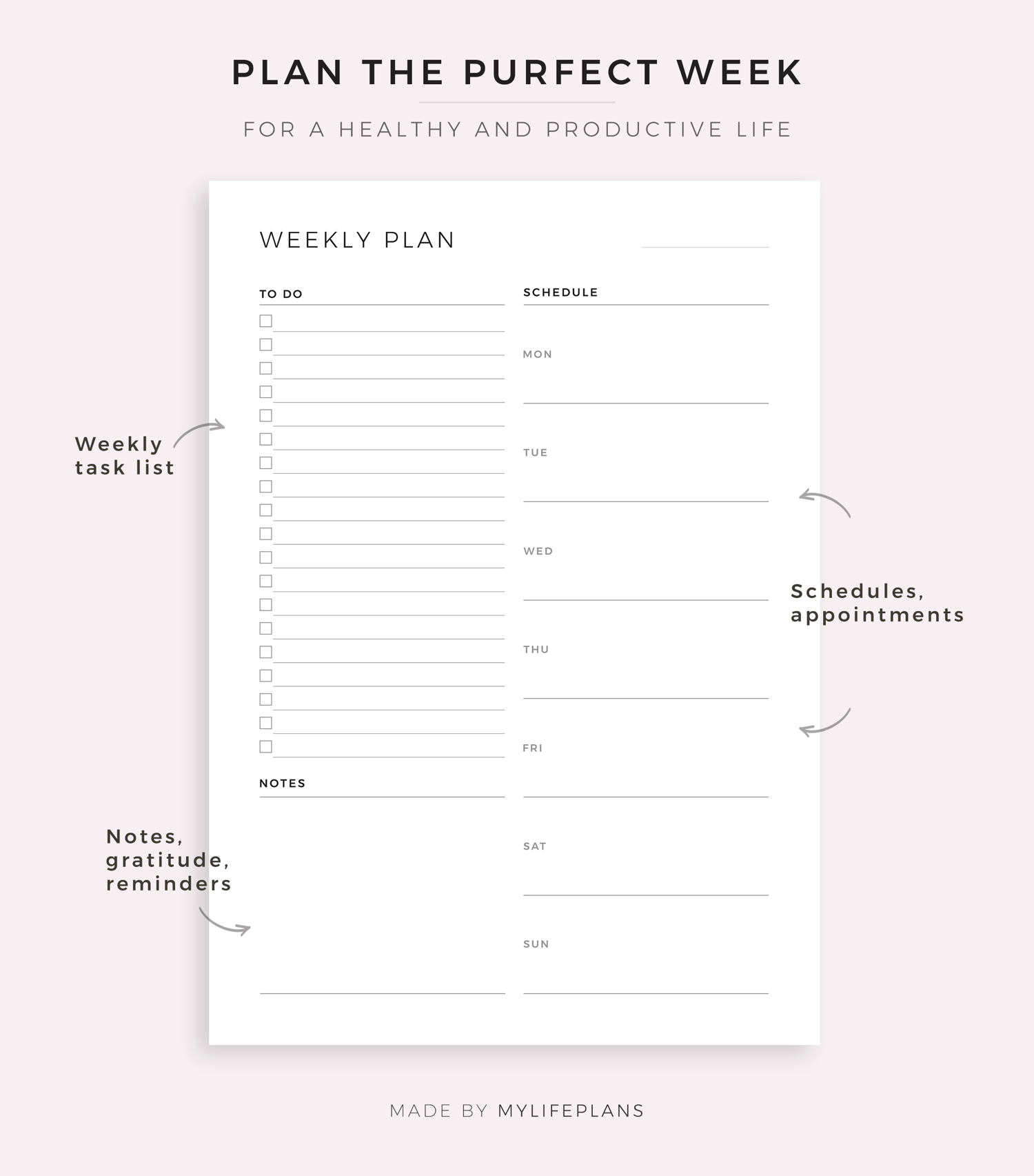 This is a printable weekly to do list planner — just download, print, and start using it right away.