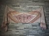The original sample is huge, and requires a bit more than one skein for two out of three colors used. A shorter version can be worked using only 1 skein per color (see instructions).