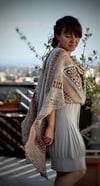 La stola è lavorata dal centro verso l’esterno in due metà, cominciando dall’avvio provvisorio centrale. Si lavora la prima metà del motivo stranded e si prosegue con il resto della metà, con aumenti centrali e diminuzioni laterali; si riprendono poi le maglie all’avvio e si lavora l’altra metà in modo speculare.
