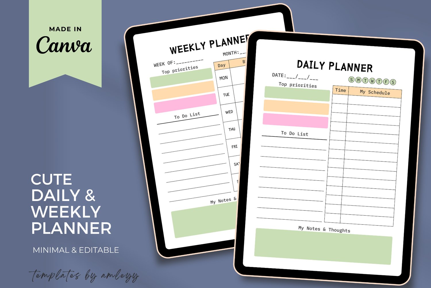 Aesthetic Daily & Weekly Planner Canva Template | Cute Pastel Printable Planner