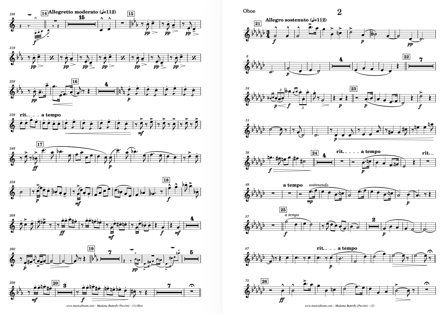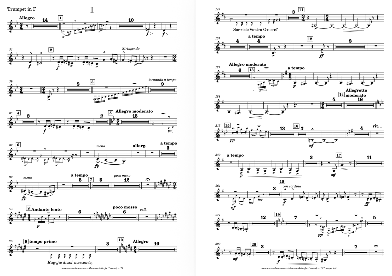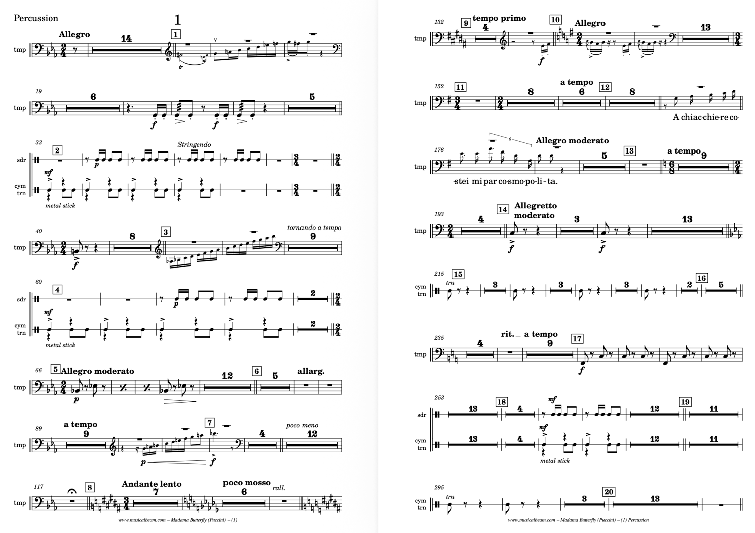 Madama Butterfly, PARTS for Chamber Orchestra: (19-27 players)