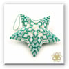 One of the most popular things to make in beadwork these days are the 3-D stars, and the possibilities for designs are almost as infinite as stars themselves. This is the fourth of a set of “Fleur Ice” patterns, all made with the same four colours, showing off the teal, white, silver and aqua combination perfectly.