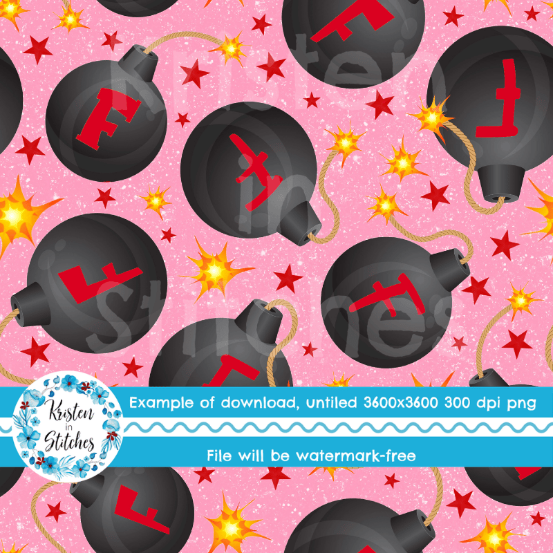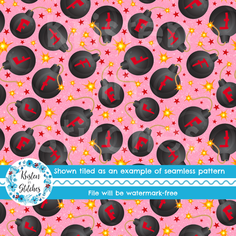 F-Bombs Seamless Pattern, Black Bombs and Sparks