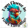 I am fluent in fowl language. PNG/Clipart. Fixed Text
