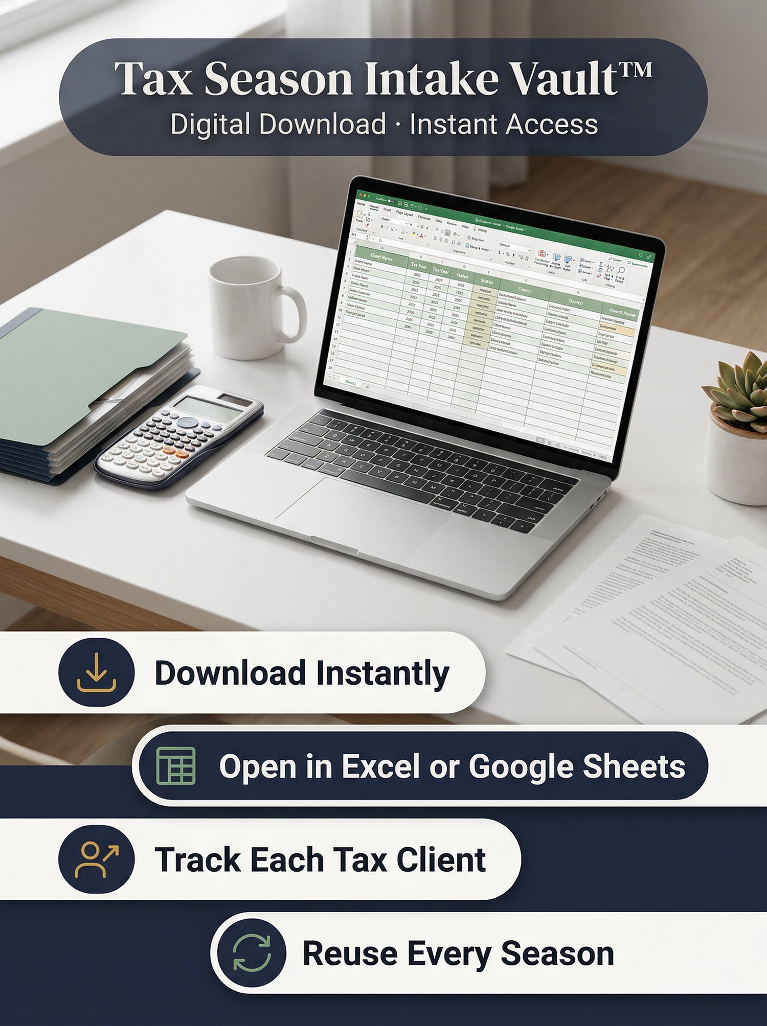 Keep tax season cleaner, faster, and easier to control with Tax Season Intake Vault™.
