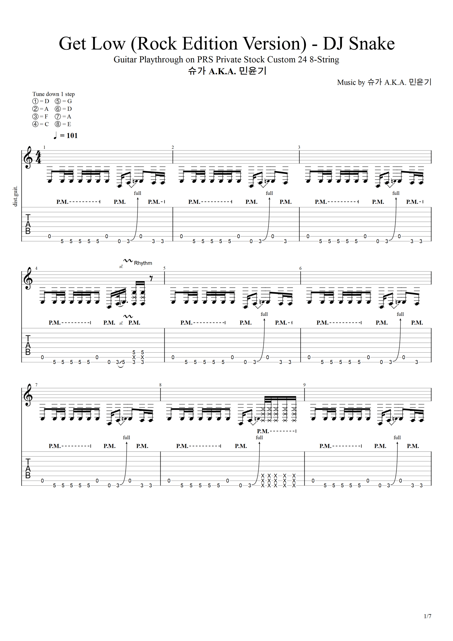 민윤기 - Get Low (ROCK Guitar Playthrough) [TAB Only]